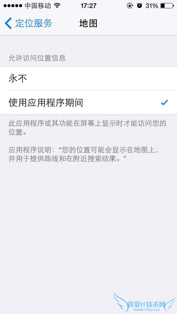 而iOS 8的一个新功能,就是能让App在使用期间才可访问设备的位置,而当App处于后台状态的时候,你的位置也不会被获取。这样子就跟以前,只要允许了访问,即使处于后台也会一直更新设备位置不一样,显得更加人性化。