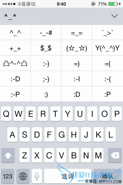 3、再接着在符号键盘中,点击“^_^”,就可以看到很多颜文字了。再点击向上的箭头,可以看到更多字符表情选项。