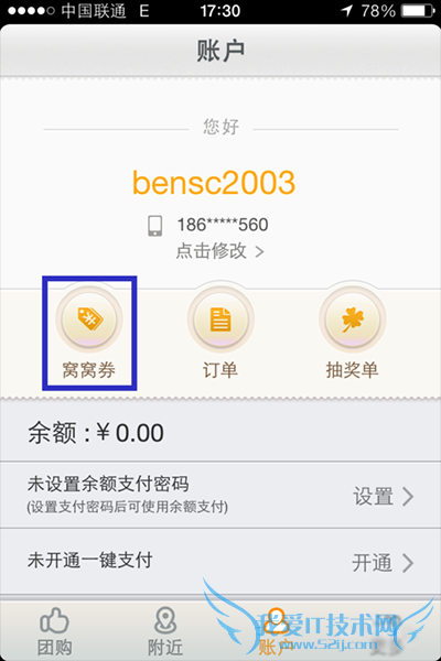 1、这里以团购的电影票为例,打开团购应用以后点击团购劵,如图所示