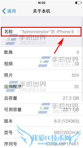 1)进入iPhone6Plus的【设置】,点击【通用】选项,然后选择【关于本机】