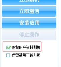 3、再次调入ios8的固件,选择右边的保资料刷机;
