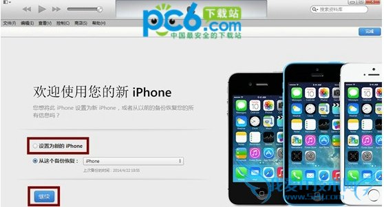 五、恢复完成之后,在iTunes上点击“设置为新的设备”: