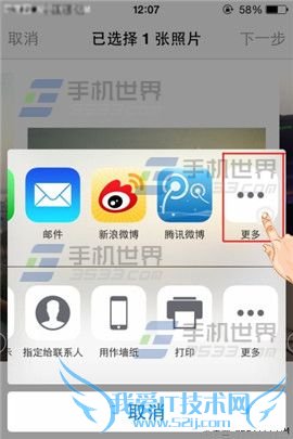 iPhone6照片分享到微信方法。不少小伙伴在使用iPhone6相册时都会问,能不能把照片直接快速的分享至某某应用里面,下面手机世界小编以分享到微信里面为例,教大家iPhone6照片分享微信方法。PS:首先必须安装第三方应用如(微信)。