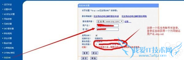 3.设置花生壳动态dns,进去注册一下登录就可以。成功登录后,要记住圈圈里的那个域名,后面设置要用。