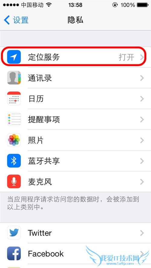 打开隐私中的“定位服务”