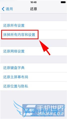 2)拉到最下面选择【还原】,点击【抹掉所有内容和设置】。