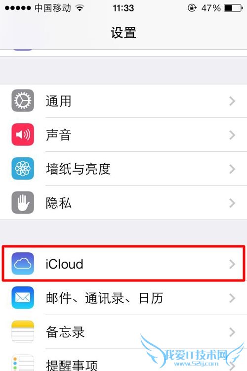 2、在设置列表中找到iCloud选项,点击进入。