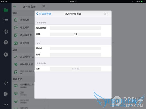 9、在iPhone/iPad上下载免费版OPlayer,点击左上角加号,然后选择 FTP 服务器。