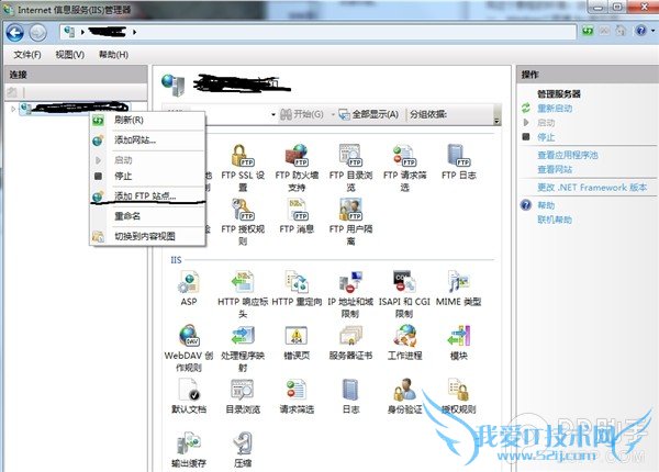 3、点击左边那一栏,右键-添加FTP站点。FTP 站点名称可以随便起,物理路径则选择你想要在iPhone/iPad上访问的磁盘或文件夹。