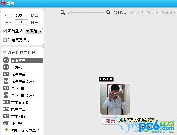 打开自己的照片,采用美图秀秀编辑,点击右上角裁剪,在裁剪里面,设置宽度,高度(一般滑块高度,宽度在110像素左右)