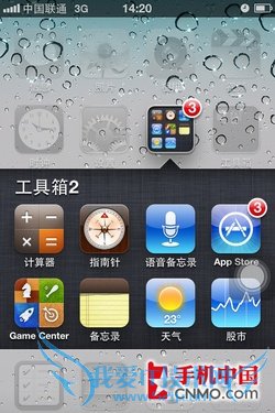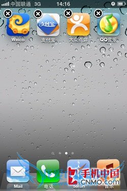 iOS 5系统在待机界面上与之前的系统没有太多区别,依旧是4×4的图标界面加上下方四颗常用应用界面,所有日常应用也是一应俱全。iOS将最常用的程序放在了第一页,比如短信、电话、时钟、日历等。每个应用下方还都有文字注释,方便用户识别应用的功能。当用户有未接来电、信息或者提醒时,应用右上角还会出现醒目的计数提示。
