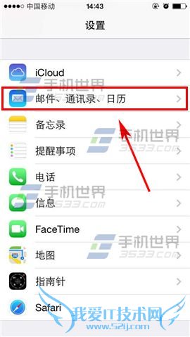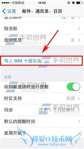 点击设置进入,点击【邮件、通讯录、日历】,接着选择【导入SIM卡通讯录】即可。(如下图)