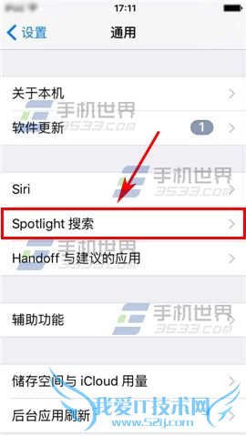 2)在通用界面点选【Spotlight搜索】,进入后关闭【Siri建议】右边开关即可。(如下图)