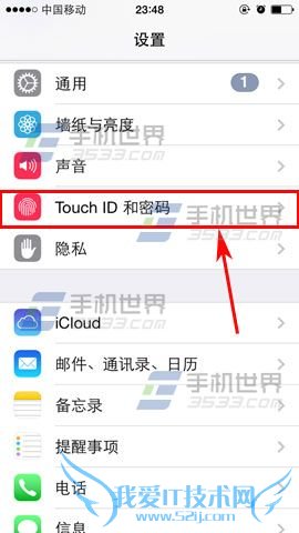 1)点击【设置】,进入界面后,找到并点击【Touch ID和密码】。(如下图)