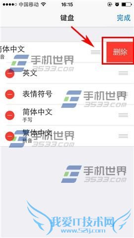 3)点击右上角【编辑】进入删除模式,点击【红色按钮】可对已保存的输入法进行删除。(如下图)