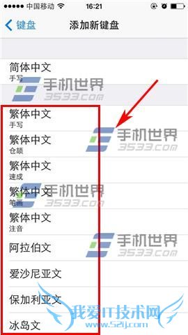 4)键盘界面最下方可以选择【添加新键盘】,根据个人需求,可以选择下列输入法,点击即可添加。(如下图)