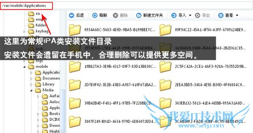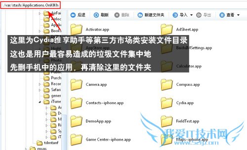 2.维享助手、iTools、Cydia的安装目录在【/private/var/stash/Applications】中,想要完整清除掉这些安装文件,需要您先将手机上的应用删一遍,这样再次删除其中文件就会干净利落,不留痕迹。