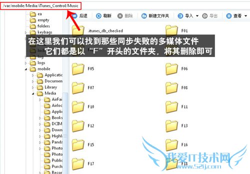 它们都是以“F”开头为名的文件夹,将它们删除后进行重启,然后取消第一次媒体同步,再进行一次同步即可完成整个清理过程。