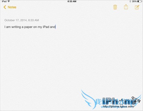 现在将使用备忘录(iOS 端和 Mac 端)作为例子进行说明。首先开始在 iPad 上的备忘录上写点东西。
