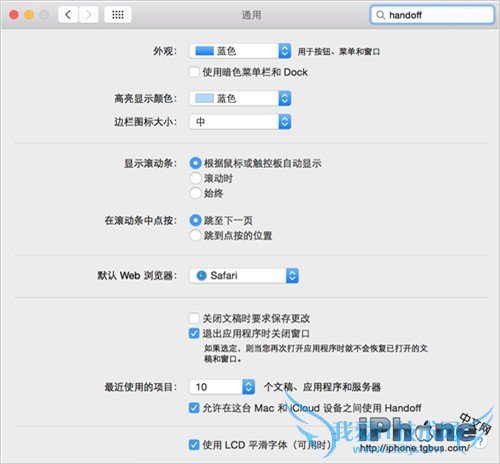 在满足 Handoff 使用的要求后,让我们先来确认一下 Handoff 是否已经启用。在 iOS 设备上前往设置并选择通用,然后点击“ Handoff&建议应用”来确保已经打开该功能。至于Mac 端,则需要打开系统偏好设置。然后确保允许 Handoff 在这部 Mac 上工作。