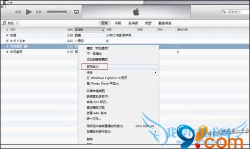2、对一个完整的音乐进行剪切,右键歌曲--选择显示简介;