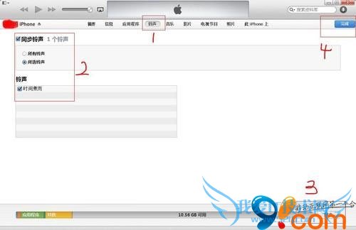 8、打开iTunes的资料库--选择铃声--同步铃声--同步--完成;