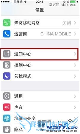 3、当我们进入“通知中心”界面后,我们向下滑动屏幕可以看到“包括”选项,我们可以在包括下面看到“信息”选项,如下图,然后点击进入。