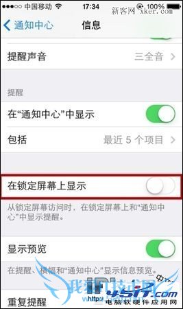 4、我们进入“信息”选项后、向下滑动屏幕可以看到“在锁定屏幕上显示”选项,这个选项默认是打开的,我们只需要将它关闭即可,如下图。