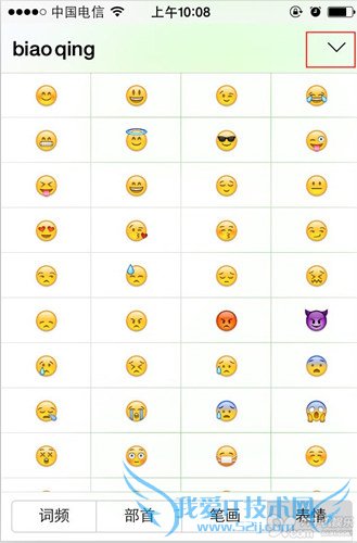 使用“简体中文”“繁体中文”输入“biaoqing”,点击键盘右方箭头即可。