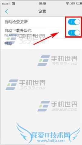 2)打开后我们再点击右上角的【设置】,接着把【自动检查更新】和【自动下载升级包】两栏的椭圆往左拉关闭即可。(如下图)