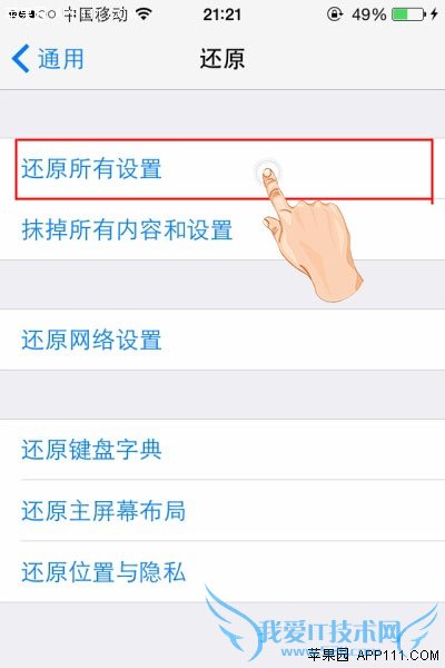在转卖iPhone之前,为了避免可能的数据泄露,最好是让iPhone恢复到出厂设置,这样更为干净彻底,具体操作方法: 在设置应用中,通用选项页面,点击进入“还原”选项。