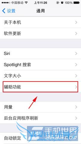 1)首先打开苹果iphone5c的“设置”,然后点击“通用”,在通用选项中再找到并点击“辅助功能”。