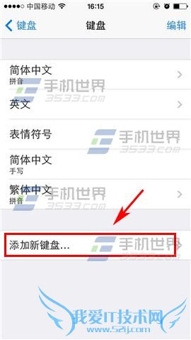 4)键盘界面最下方可以选择【添加新键盘】,根据个人需求,可以选择下列输入法,点击即可添加。(如下图)