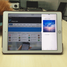 SlideOver: 在 iPad 上双击 Home 键,在多任务试图中选择一个应用,然后从屏幕右侧向左滑动即可执行 SlideOver 功能。这个时候你就会发现在当前应用下,屏幕右侧多了一个侧边栏窗口,而这个窗口内运行的就是第二个应用。在屏幕右侧的窗口中进行下拉操作,可以选择不同的应用(目前只支持部分系统自带应用)。左侧应用占屏幕尺寸的 70%,右侧占 30%。简单的说,如果你正在浏览网页,此时来了一条微信,你可以利用 SlideOver 功能侧滑出微信窗口进行回复,而不必切出再切进。