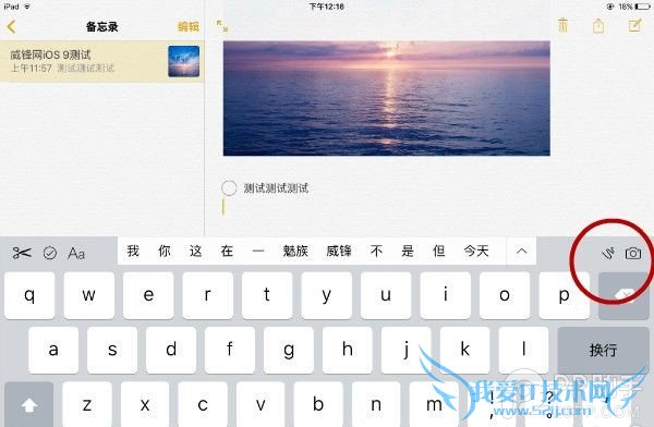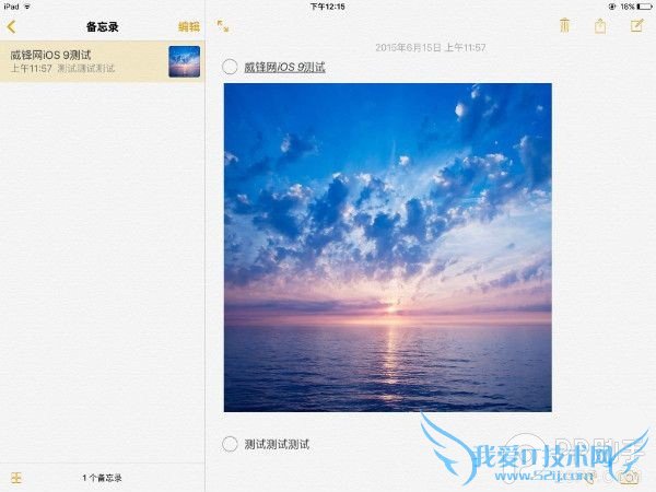 iOS8 的备忘录已经可以插入照片(只能插入已经保存的照片),但苹果在 iOS9 中让其更进一步。除了可以插入照片图库中的照片外,你还可以插入照片图库中的视频。另外你也可以使用键盘上的相机按钮来即时拍摄一张照片或者录制视频进行导入。