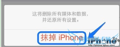 6、最后选择“抹掉iPhone”选项即可把手机还原到出厂状态,这样就完成了iPhone6 Plus恢复出厂设置的操作。