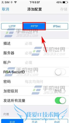 2)点击【添加VPN配置】,这里以【PPTP】为例。(如下图)