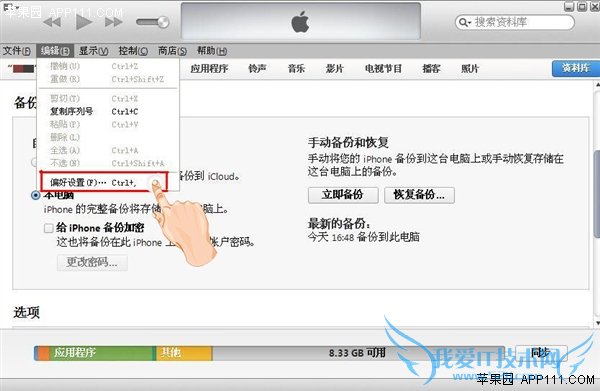 第一步,打开iTunes,点击“编辑”选项中的“偏好设置”。
