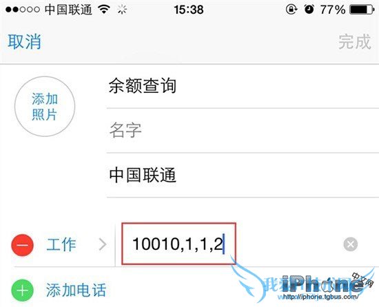 名字按个人喜好随便填写,填个“余额查询”就非常通俗易懂了。然后电话号码输入以上字段:联通就填“10010,1,1,2”;如果移动就填“10086,1,1”;电信就填“10000,1,1,2”。