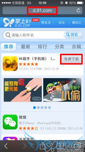 建议大家在设备上直接登陆d.91.com进行下载手机版91助手(ipa),随时随地下载安装应用。(教你如何通过d.91.com快速下载安装游戏软件)