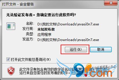 提示2:Windows7系统用户会出现如下界面,请点击【运行】
