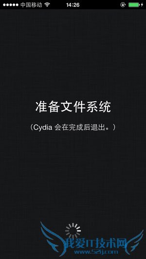 8.Cydia会自动准备文件系统,如下图所示。接着设备很快会自动注销。