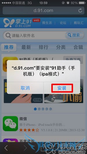 【友情提示】在不越狱状态下也可以利用91助手免费安装游戏软件(点击查看教程)