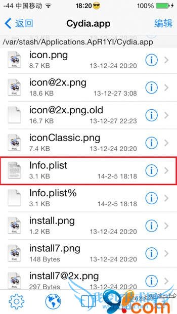 3.在Cydia.app中找到info.plist