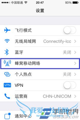 1)找到主屏上的“设置”图标,点击打开,然后在设置列表中找到“蜂窝移动网络”选项,点击进入。(如图所示)