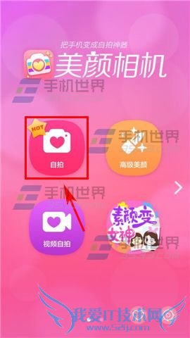 1)打开【美颜相机】,进入主界面后点击【自拍】按钮。(如下图)