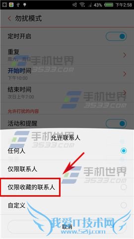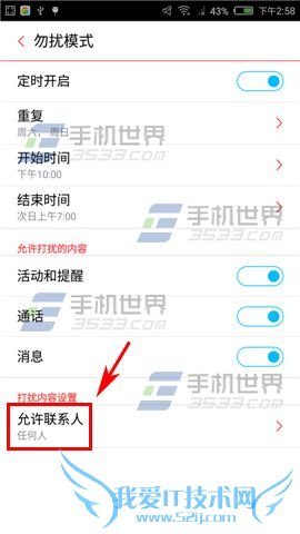 2)【定时开启】这功能一般适合有固定晚上睡觉免打扰,为了避免漏接重要电话,请自行添加【允许联系人】。(如下图)