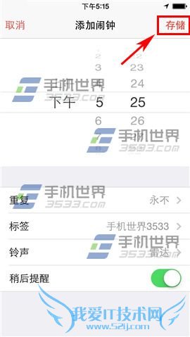 2)设置好时间根据所需我们还可以设置【重复】时间跟闹钟【铃声】设置好后点击【存储】即可。