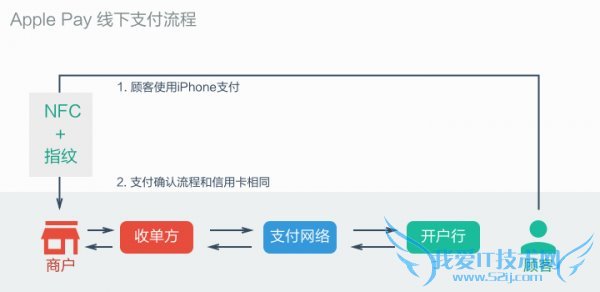 Apple Pay的支付过程是离线的,你可以把iPhone简单理解为一张信用卡。Apple Pay只做了苹果最擅长的事情,整个支付网络和传统信用卡线下支付没有任何区别,见下图:
