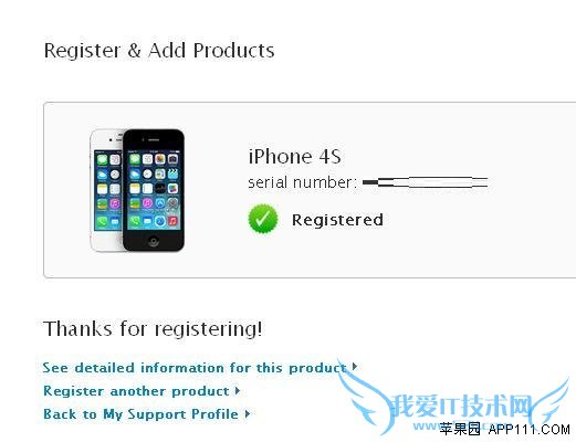 第三步,在苹果官网注册页面,输入自己设备的序列号。注册成功后,会提示注册成功。